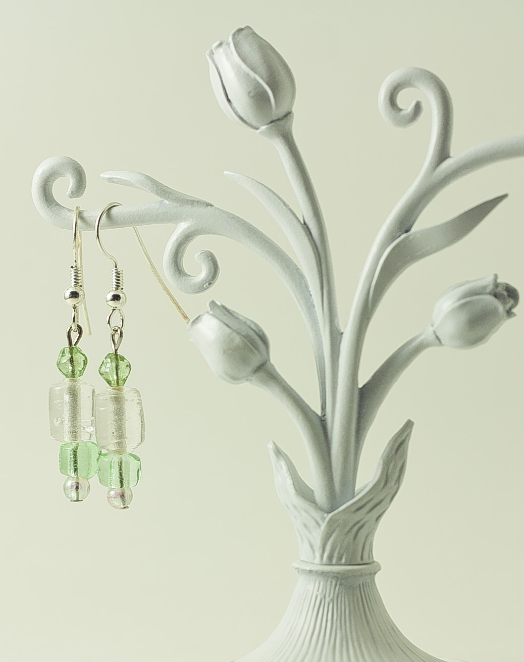 Dangle Bead Earrings- mint & clear