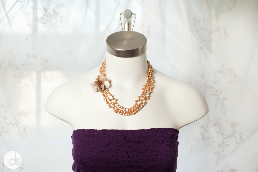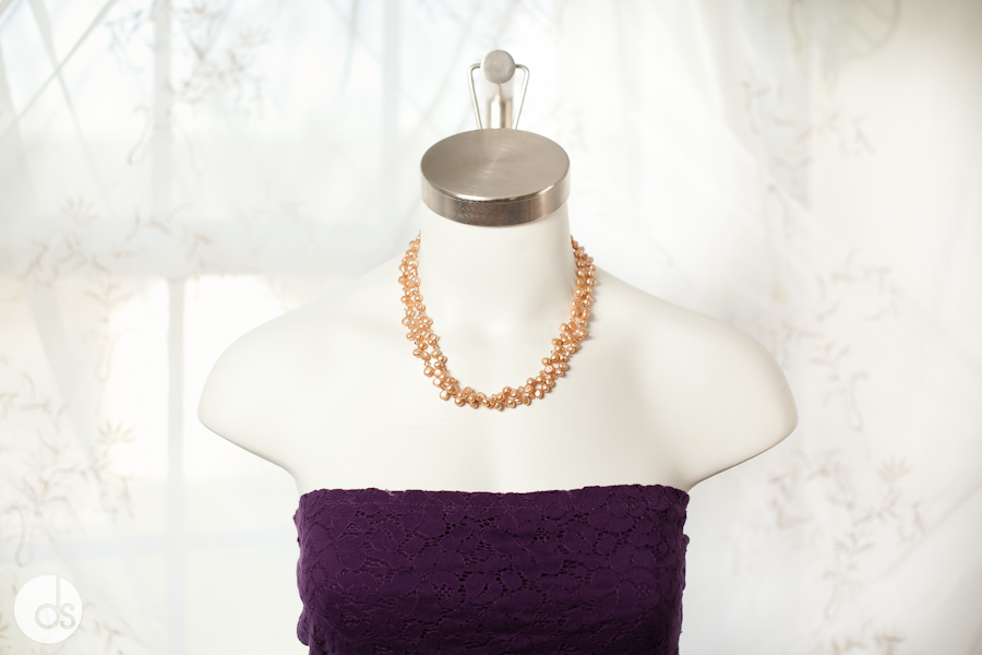 Lauren was hired by our awesome friend, Nakia, to help design and make all the necklaces in the wedding, and, as usual, she did an outstanding job! The first image above was the Bride’s necklace, and below were theĀ bridesmaidsĀ and mother’s necklaces. Here’s the final product – if you’re interested in having a custom touch to your wedding, let me know and I’ll put you in touch with the creative genius herself!